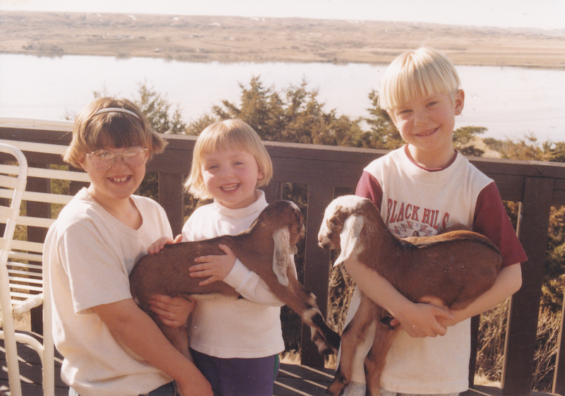 Chamberlain, SD holding a goat on the back porch of my paternal grandmother’s bed and breakfast